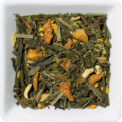Flavoured green tea with Orange/Ginger taste.