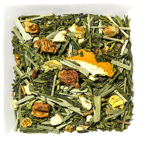 Green tea (52%), apple bits, lemongrass, citrus peels,