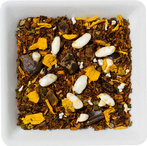 taste with Rooibos, carob bits, flavour, sweet blackberry