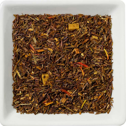 Cream caramel taste with Rooibos, caramel bits (5%), flavour, safflower petals.