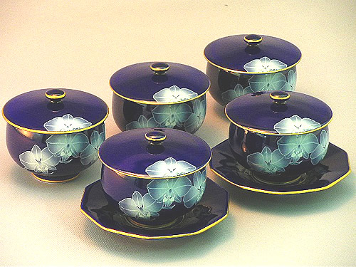 3838 - Ruri Kochouran Futatuki Yunomi 5 Cup w/Lid Set CAD160.00