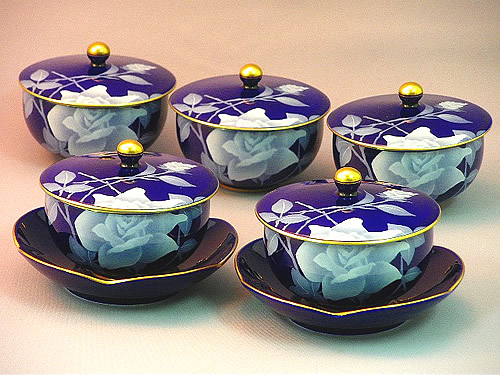 3841 - Ruri Bara Futatuki Yunomi 5 Cup w/ Lid Set CAD193.00