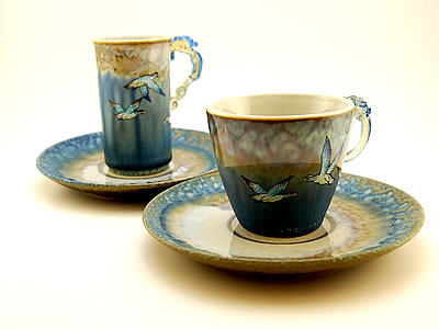 591 - Porcelain Glaze w/Glass Handle Pair Cup Set CAD220.00