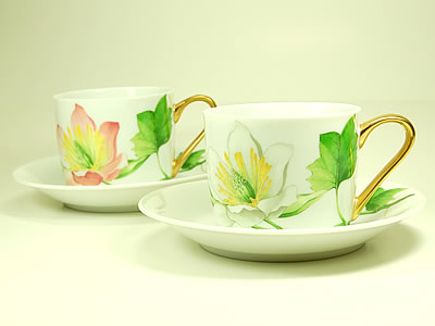 3125 - Yukiko Hanai White & Pink Flower - Tea Cup Pair Set CAD62.00