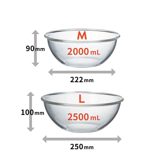 Size M = W 222mm x H 90mm, Ø 222mm, 2000ml